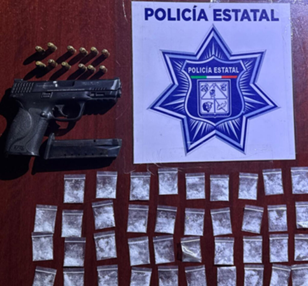 Acciones coordinadas por la Policía Estatal de Seguridad Pública (PESP) y Municipal de Hermosillo dieron como resultado la detención de un hombre armado y el aseguramiento de narcótico en la colonia Villas del Real.