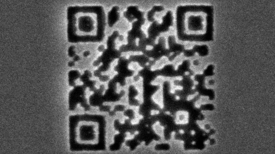 El código fue grabado en una fina capa cerámica mediante haces de iones. Sus píxeles individuales miden 49 nanómetros, aproximadamente diez veces menos que la longitud de onda de la luz, por lo que solo pueden observarse con un microscopio electrónico.