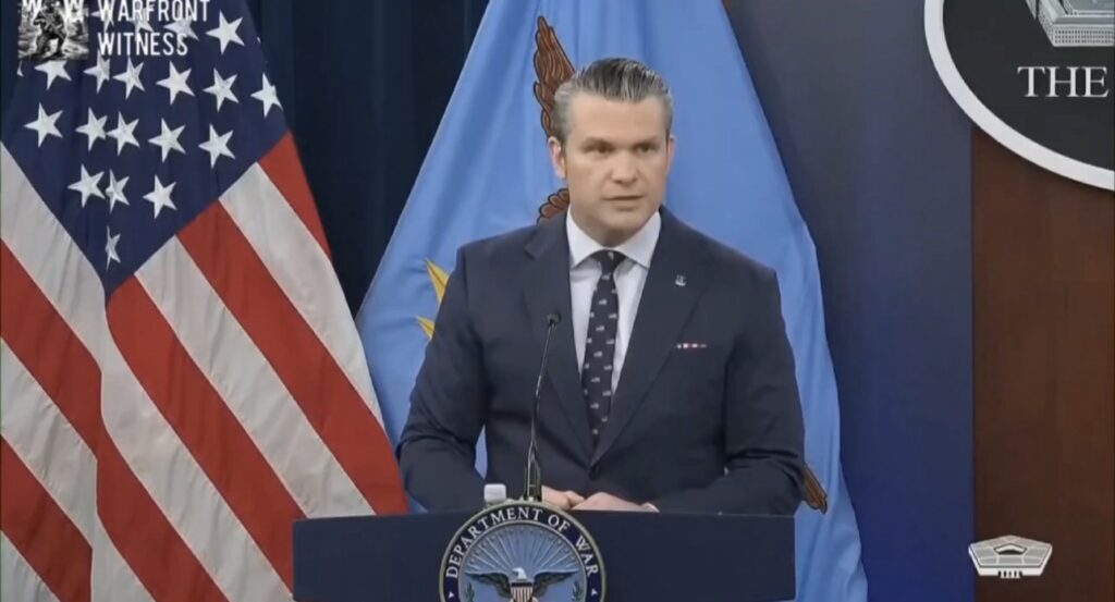El titular del Pentágono enfatizó que Washington mantiene una postura firme frente a Teherán y reiteró que las operaciones militares continuarán con determinación. Señaló que el objetivo es neutralizar las amenazas provenientes del gobierno iraní y reducir su capacidad de acción en la región.
