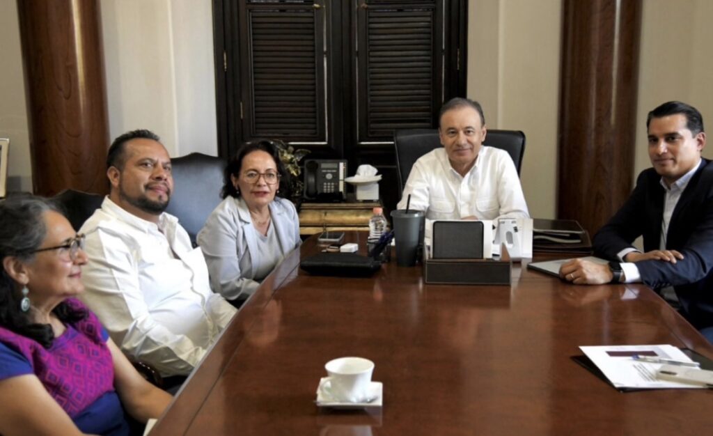 Durante un encuentro con la rectora de la Universidad Nacional Rosario Castellanos, la doctora Alma Xóchitl Herrera Márquez, y el secretario de Educación y Cultura, Froylán Gámez Gamboa, el mandatario estatal destacó que esta obra representa un avance histórico en la ampliación de oportunidades educativas para las y los jóvenes sonorenses.