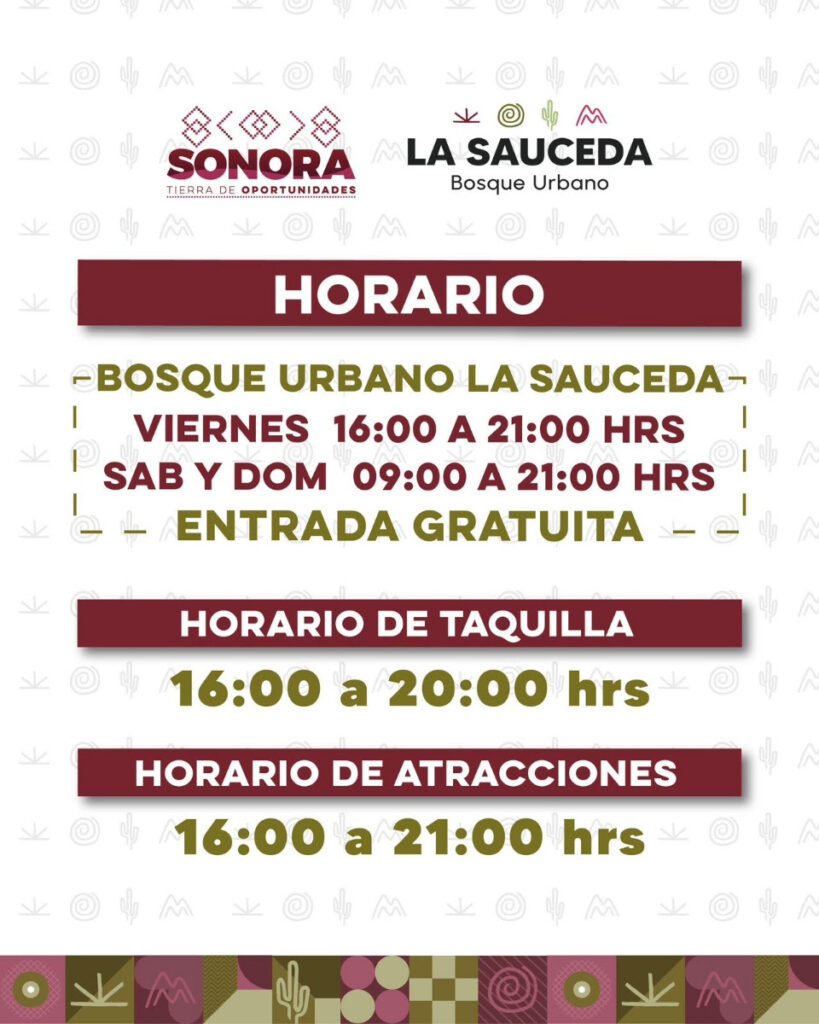 El Gobierno de Sonora, a través del Bosque Urbano La Sauceda, continúa consolidando este espacio como un lugar de recreación familiar, ofreciendo una variedad de atracciones accesibles para todas las edades, además de una agenda de actividades culturales y comunitarias.