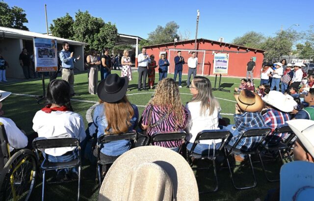 Hermosillo, Sonora; 28 de marzo, 2026.- Como un ejemplo de trabajo en equipo entre gobierno y ciudadanía consideró el presidente municipal Antonio Astiazarán la construcción de un campo de fútbol con pasto sintético, con inversión tripartita de 433 mil 774 pesos, cuya entrega formal encabezó en la primaria Jaime Torres Bodet, de la colonia Olivares.