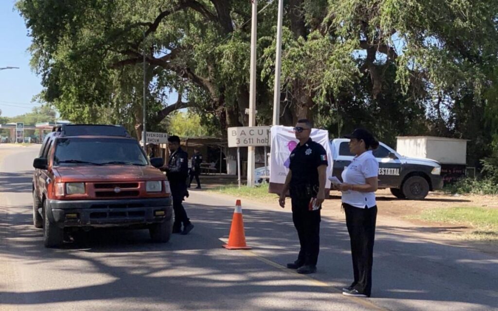 Bácum, Sonora; 31 de marzo de 2026.- Siempre dispuestos a colaborar con la ciudadanía, elementos de la Policía Estatal de Seguridad Pública (PESP) instalaron operativo informativo en la región del Valle del Yaqui, para orientar sobre cómo utilizar el 9-1-1 ante una emergencia y promover la denuncia anónima de delitos al 089.