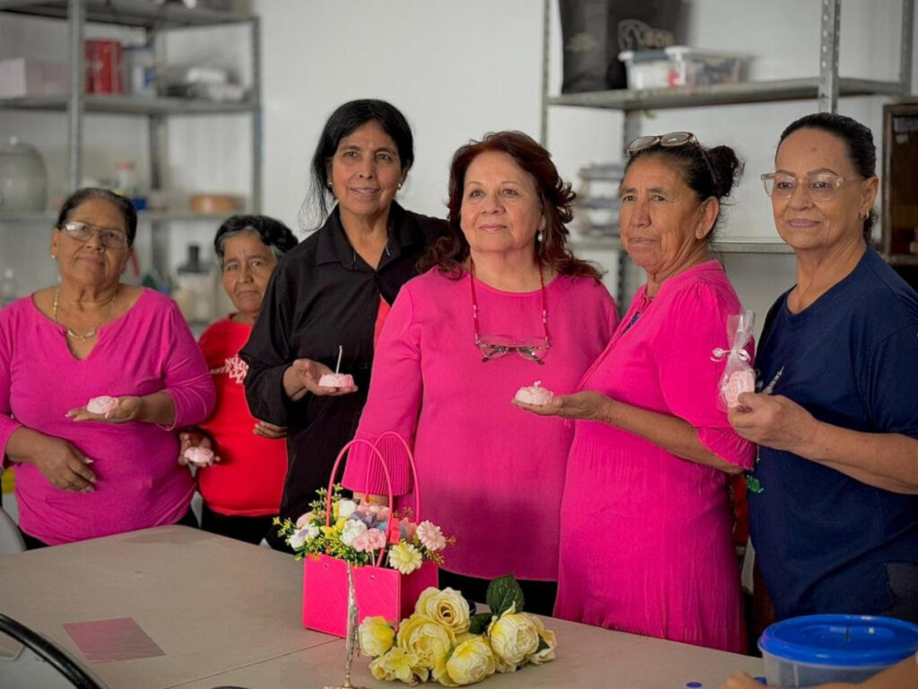 Como parte del programa de Redes de Apoyo para Personas Adultas Mayores y Centros de Cuidado, una de las beneficiarias brinda este taller, donde explica los procesos y asesora paso a paso para crear diferentes diseños de velas.