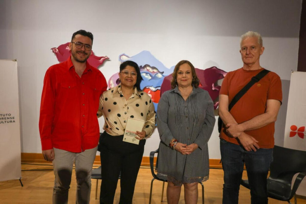 Durante la actividad participaron Beatriz Aldaco, directora general del ISC; Erica Salinas, presidenta de la Fundación Helga Krebs; Abraham Palafox, curador de la exposición; y Bruno Montané Krebs, hijo de la artista, quienes compartieron sobre el trabajo de investigación y montaje desarrollado para la exhibición de la obra.