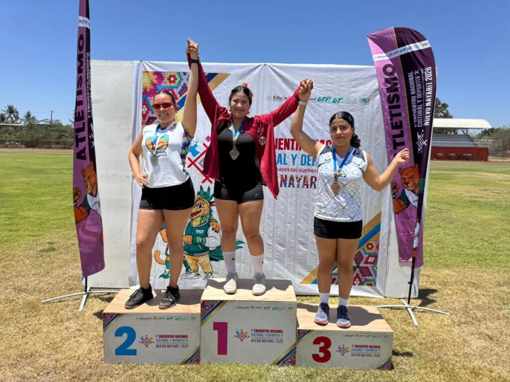 Por su parte, Sinaí Sarahy Ruiz Ríos, quien actualmente cursa la carrera de Paramédico, obtuvo el oro en lanzamiento de bala, con el apoyo del docente Manuel Valdez.