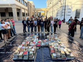 Las y los asistentes pudieron seleccionar uno de los 5 mil libros que se pusieron a disposición al formar una “H” gigante con los libros donados de la cual las personas interesadas tomaron un libro totalmente gratis para continuar con el hábito de la lectura.