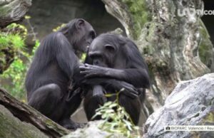 Una afligida chimpancé cargando a su bebé muerto es la escena con la que se encuentran los visitantes del Zoológico Bioparc en la ciudad...