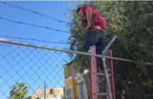 VIDEO: Se viraliza video de hombre atorado en malla con púas...