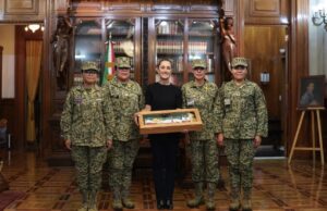 La presidenta Claudia Sheinbaum Pardo expresó su reconocimiento a las mujeres militares de la Secretaría de la Defensa Nacional (Sedena) encargadas de confeccionar la...