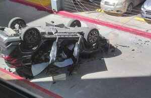 Camioneta cae desde estacionamiento del Hospital San José en Hermosillo