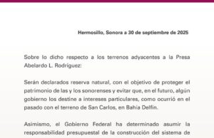 Hermosillo, Sonora.-El Gobierno de México y el Gobierno del Estado de Sonora anunciaron este martes que los terrenos adyacentes a la Presa Abelardo L....