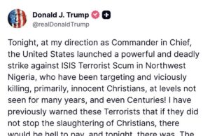 Donald Trump anuncia ataque de Estados Unidos contra ISIS en Nigeria