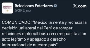 México lamenta y rechaza ruptura diplomática de Perú