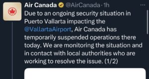 Air Canada suspende operaciones en Puerto Vallarta por situación de seguridad
