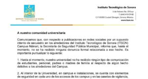 ITSON Desmiente Rumores Sobre Intento de Secuestro en Campus Náinari
